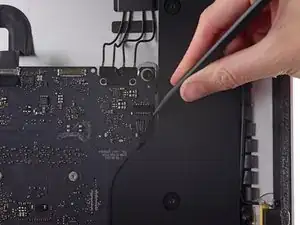 Используйте наконечник лопатки, чтобы вытолкнуть разъём кабеля вентилятора из его гнезда на логической плате.