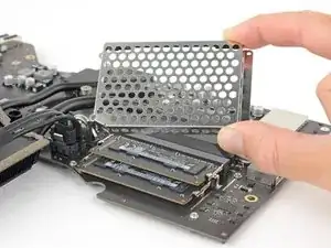 Снимите левый и правый кронштейны жёсткого диска с iMac.