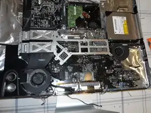 Теперь просто извлеките логическую плату, внимательно наблюдая за всеми проводами, которые вы только что отключили. Рёбра радиатора прикреплены к логической плате и извлекаются вместе с ней.