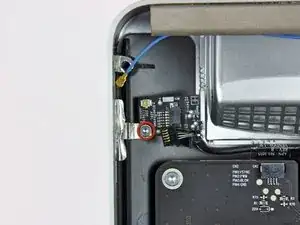 Удалите один винт Torx T8, крепящий плату Bluetooth к корпусу.