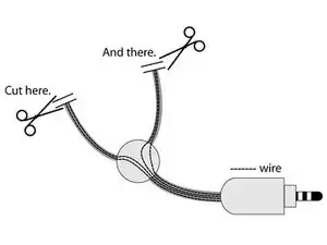 Перережьте каждый из кабелей колонок. Чтобы получить максимальную длину, можно разрезать кабели рядом с белой «ручкой», где сливаются два провода.