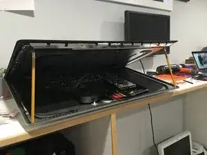 Текущие руководства iFixit и OWC предлагают отключить кабели дисплея, с этим руководством это делать не нужно. Я держал iMac горизонтально и после открытия дисплея просто подпер его с обеих сторон двумя обычными карандашами.