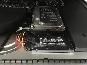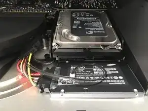 Я отключаю SATA- и силовой кабель от HDD, добавляю 2,5" SSD (оставляя HDD на месте).
