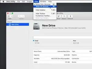 Если вы не видите свой диск в меню Дисковой утилиты, выберите Показать все устройства в разделе Вид строки меню.
