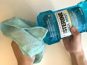 Слегка увлажните отдельную микрофибровую тряпку жидкостью для полоскания рта Listerine или белым уксусом.