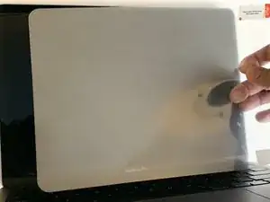 Убедитесь, что перчатки надеты на этом шаге, так как антирефлексное покрытие на экране MacBook выделяет химические вещества, которые могут впитываться через кожу.