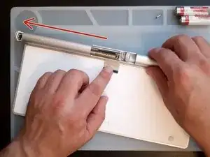 Снимите пластиковую крышку с центра трубки и отключите гибкий кабель клавиатуры.