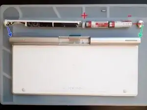 Как видно на фото, отрицательная полярность батареи соединена с основной платой через алюминиевый корпус клавиатуры.