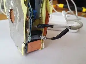 Помните, что белый провод от блока питания ДОЛЖЕН быть припаян к белому проводу кабеля, идущего к разъёму MacBook.