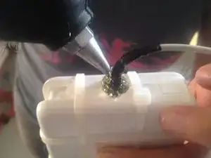 Нанесите небольшие точки суперклея по краям корпусов. Поставьте другую половину пластикового корпуса и закройте блок питания.