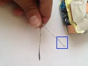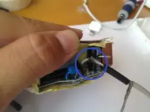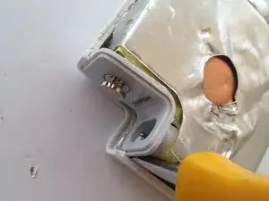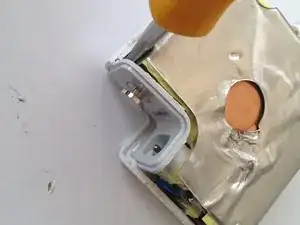 Используйте отвёртку, чтобы ослабить клей вокруг разъёма питания с обеих сторон.