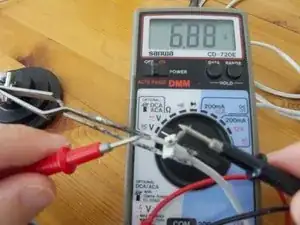 С помощью мультиметра проверьте наличие напряжения. Оно должно быть около 6.8 В постоянного тока