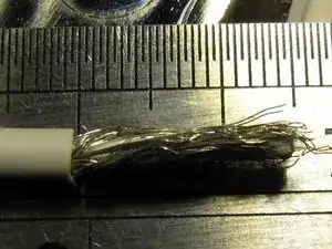 Обрежьте оплётки, оставив около 3 мм свободными за пределами термоусадки.