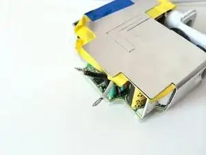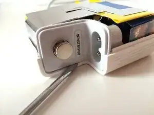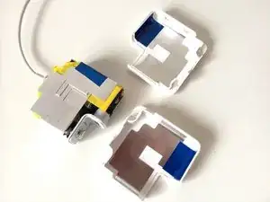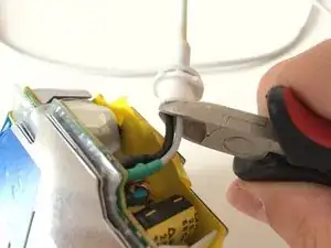 С помощью обычных плоскогубцев и/или тонкой отвёртки/ножа попытайтесь выдавить небольшую металлическую пластину, которая фиксирует два провода и прикрепляет их к белому пластику.