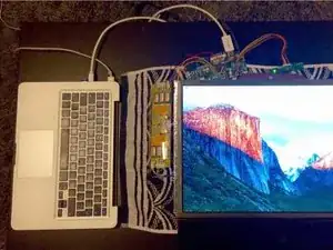 Перед сборкой стоит проверить, что плата драйвера работает — у меня возникли проблемы с кабелем Mini DisplayPort–HDMI, который я купил, поэтому я вернул его и купил вместо него кабель Mini DisplayPort–DVI длиной 1 м, который работал нормально.