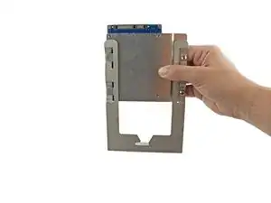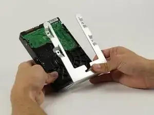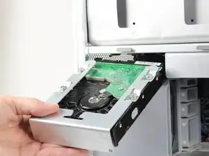 Потяните жёсткий диск прямо наружу, захватив металлическую салазку за нижнюю часть. Сначала может быть трудно вытащить, но после освобождения салазка не должна требовать больших усилий для извлечения.