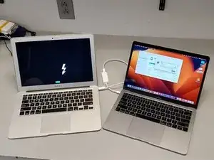 Убедитесь, что ваши два Mac подключены с помощью кабеля Thunderbolt.