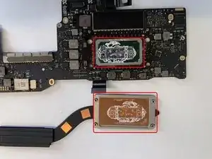 Показано, как разобрать необходимые детали для снятия материнской платы, а затем заменить термопасту между процессором и радиатором.