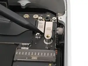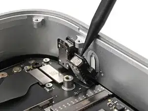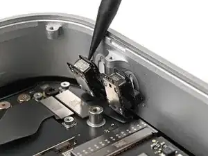 Используйте острие лопатки, чтобы выподнять передние порты USB-C из их углублений в корпусе.