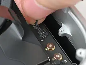 Сожмите кабель кнопки питания близко к разъёму и потяните его в сторону, чтобы отключить его.