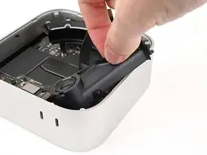 Пока не снимайте внутреннюю пластину — она всё ещё подключена к Mac mini кабелем.