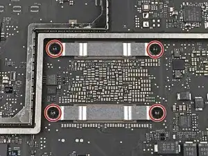 Используйте отвертку Torx Plus 5IP, чтобы выкрутить четыре винта длиной 4.4 мм, фиксирующие кронштейн радиатора.