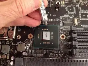 Нанесите термопасту на чип северного моста в виде линии.