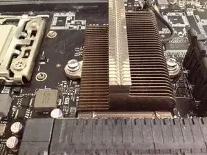 Тщательно очистите радиатор северного моста. После удаления старой термопасты с контактной поверхности очистите ребра радиатора. Сначала используйте сжатый воздух. Затем используйте столовый нож с безворсовой тканью, смоченной изопропанолом, чтобы очистить каждый промежуток между ребрами.