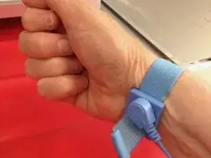 Прикрепите кабель к запястью перед тем, как брать в руки электронные компоненты. Смочите запястье солёной водой или слегка оближите запястье, чтобы обеспечить хороший электрический контакт. Убедитесь, что клемма остаётся на запястье во время работы с Mac Pro.
