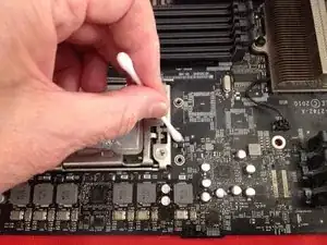 Не поддавайтесь искушению сэкономить на чистке. Пыль и липкая грязь представляют функциональную угрозу для исправности вашего компьютера. Кроме того, Вы перфекционист, не так ли? Если бы это было не так, у Вас не было бы Mac Pro 5,1. Попробуйте сделать плату такой же чистой, как новая.