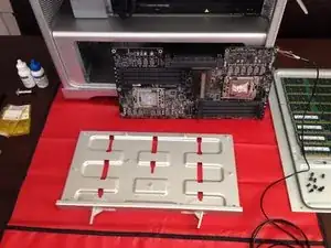 Поместите очищенную PCB процессоров на поднос, где она не будет мешать и будет защищена от несчастных случаев, пока вы чистите основные радиаторы.