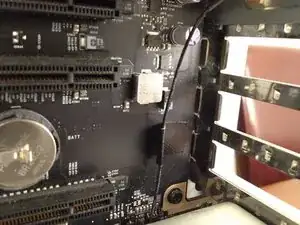 После того как вы установите заглушку слота PCIe с кабелем на место, проведите кабель вдоль задней части корпуса в отсек процессора. В правой задней части отсека процессора вы найдете устройство Bluetooth, показанное выше.