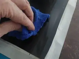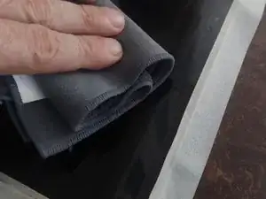 Далее используйте малярный скотч, чтобы закрыть резиновую прокладку по краям дисплея. Это может быть довольно сложно, так как нужно заклеить участок на расстоянии 1–2 мм от края резинки, но не приклеиваться к самой резинке слишком сильно — при удалении скотча можно повредить хрупкую прокладку. Это поможет предотвратить попадание растворителя на прокладку и защитит её при очистке экрана.