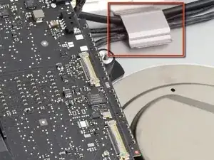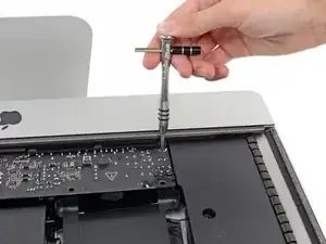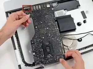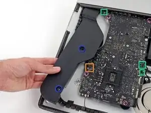 Открутите 3 винта Torx T8 с радиатора, затем выньте плату логики из iMac
