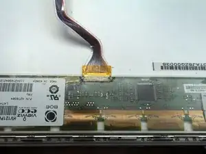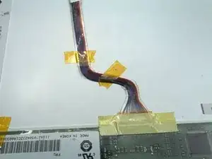 Расположение разъёма LVDS-кабеля отличается. Поэтому кабель не будет лежать достаточно ровно. отрежьте прозрачную ленту вокруг проводов. Перепозиционируйте кабель, затем зафиксируйте его лентой в нужном положении.