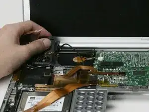 Вытяните ленточный кабель трекпада из ослабленного разъёма.