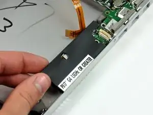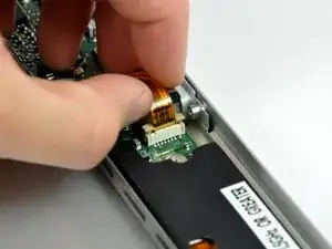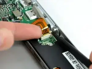 Используйте ноготь и наконечник лопатки, чтобы слегка приподнять защёлку кабеля ZIF над её разъёмом.