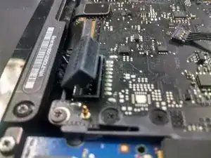 После снятия винтов и пластиковой крышки извлеките жёсткий диск, затем отсоедините его от логической платы.