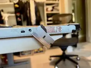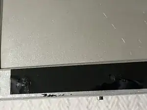 Отклейте алюминиевую ленту между крышкой буферной платы и металлической рамой. Это позволит снять крышку, не сгибая защёлки у шарнира.