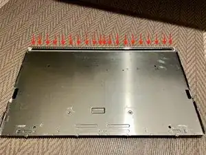 Вокруг 8 винтов крепления ЖК-дисплея расположены мощные магниты. Винты могут легко упасть внутрь iMac. Изогнутые пинцеты хорошо подходят как для снятия, так и для установки винтов.