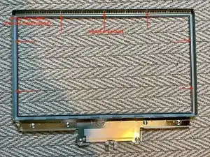 Установите 6 винтов с крестообразным шлицем. Сравните с предыдущим изображением, чтобы точно определить место установки. Есть дополнительные отверстия для установки магнитной скобы. Если использовать их для винтов, позже невозможно будет установить магнитную скобу без повторного демонтажа хрупкой ЖК-панели.
