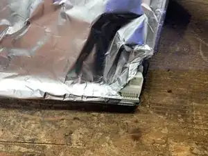 Закройте область разъёма алюминиевой фольгой для защиты от тепла. Удалите старый бессвинцовый припой. Перепаяйте свежим припоем со свинцом.