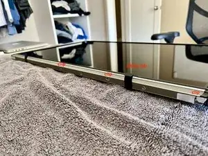 Положите экран с ориентацией стекла ЖК-дисплея вниз на ровную поверхность. Установите кронштейны так, чтобы магниты плотно прилегали к плоской поверхности. Установите шурупы Torx. Это обеспечит правильное выравнивание для плотной установки магнитного стекла.