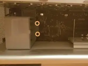 Удалите два винта PH #1 длиной 10 мм, крепящих вентилятор PCIe.