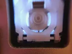 Отделите белую часть клавиши. Воспользуйтесь этим моментом, чтобы очистить от пыли или мусора клавишу или механизм петельки.