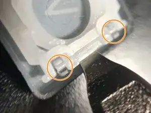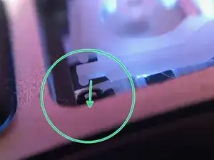 Как показано на фото, снова вставьте штифт петли в металлический выступ с обеих сторон.