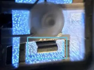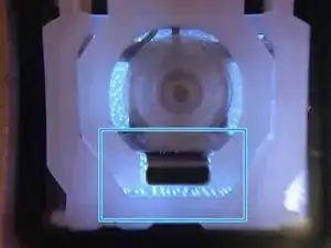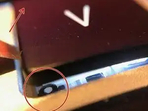 Вставьте петлю (обрамленную на фото) в металлический слот на клавиатуре, как показано на втором фото.