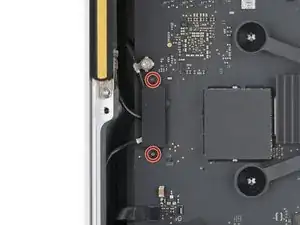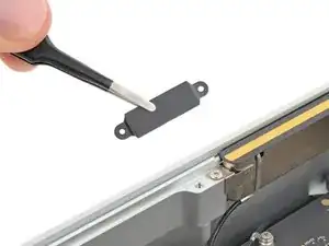 Используйте отвертку Torx T3, чтобы вынуть два винта длиной 2 мм, фиксирующих крышку кабеля антенны.