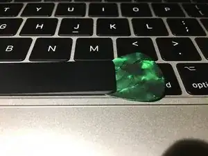 С помощью ватной палочки и изопропилового спирта очистите под клавишей. Удалите крошки пинцетом с тонкими концами.