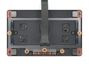 Используйте Torx‑отвёртку T5, чтобы выкрутить 13 винтов, фиксирующих трекпад: